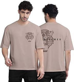 Black Trendy Front and Back Printed oversized Round Neck T-shirt for men