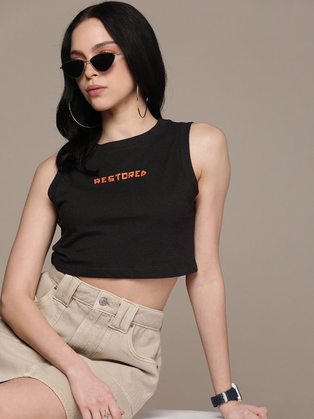 Women Printed Round Neck Cotton Blend Black T-Shirt