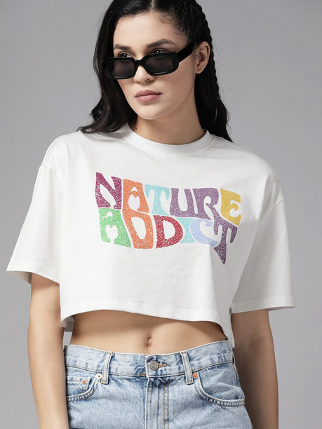 Women Typography Round Neck Pure Cotton White T-Shirt