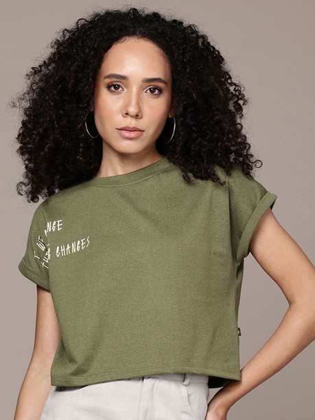 Women Printed Round Neck Cotton Blend Green T-Shirt