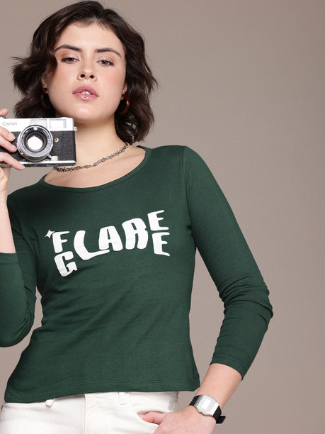 Women Printed Scoop Neck Cotton Blend Green T-Shirt