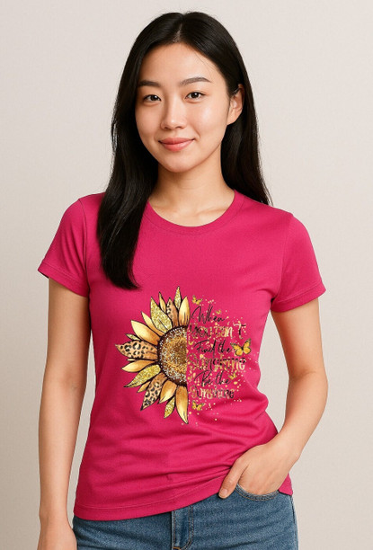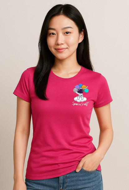 Women Graphic Print Round Neck Polyester Pink T-Shirt