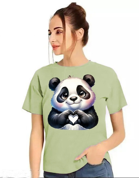 Women Printed Round Neck Polycotton Green T-Shirt