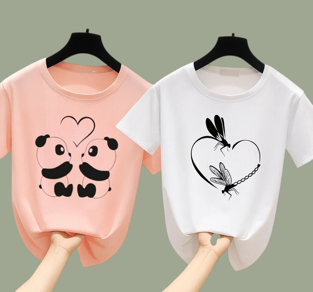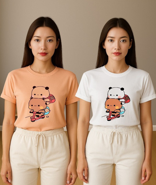 Women Printed Round Neck Polyester Pink, White T-Shirt