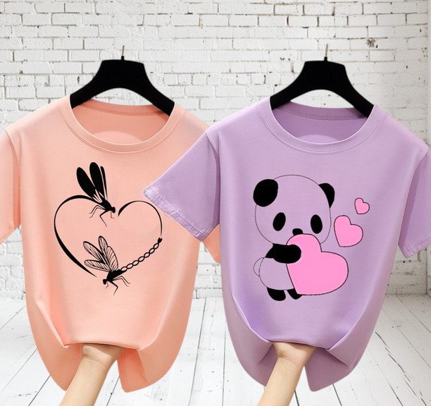 Women Printed Round Neck Polyester Pink, Purple T-Shirt
