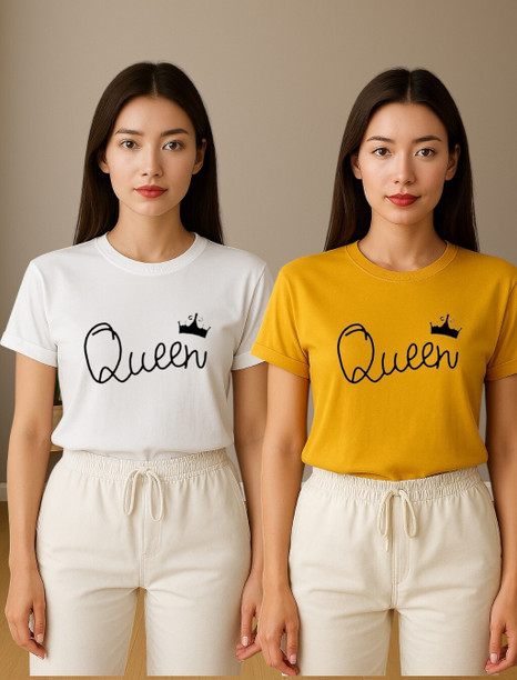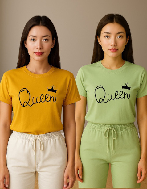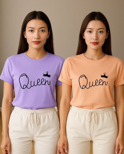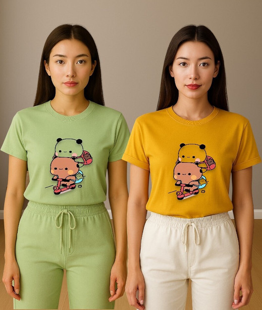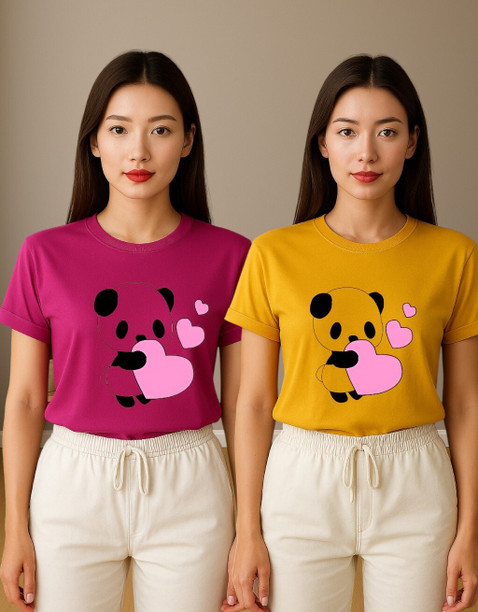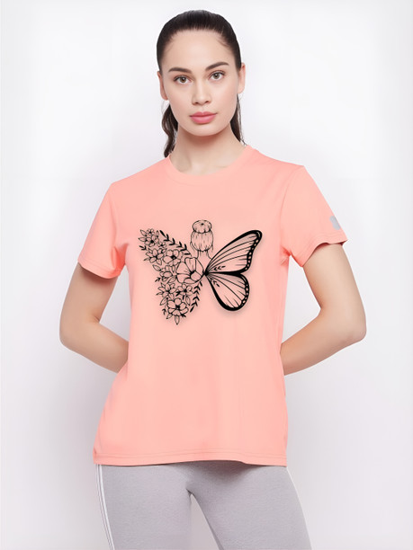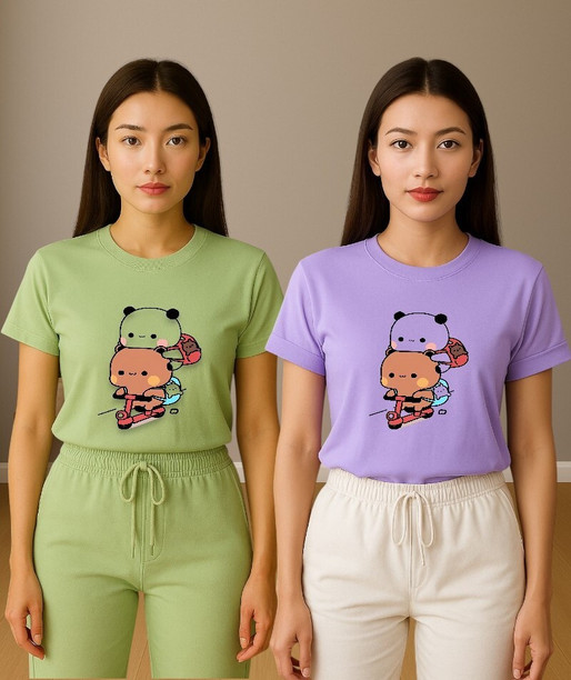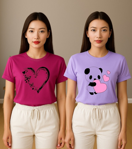 Women Printed Round Neck Polyester Multicolor T-Shirt