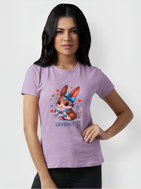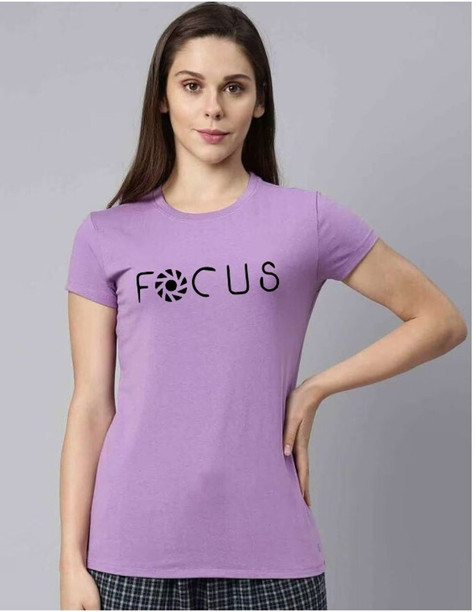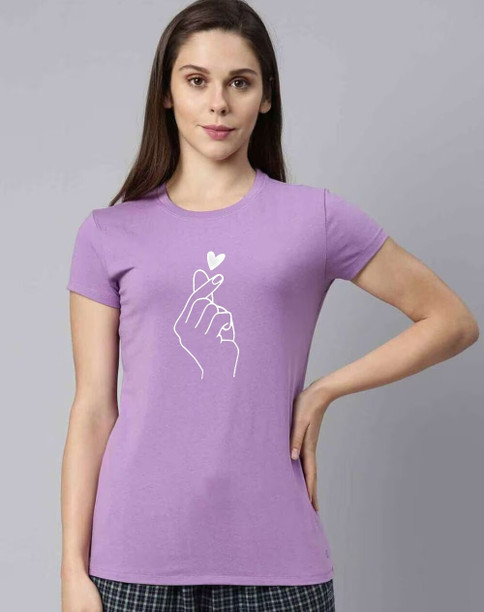 Women Graphic Print Round Neck Pure Cotton Purple T-Shi...