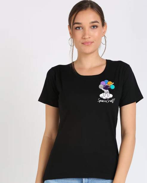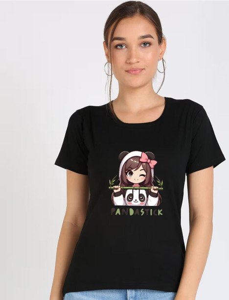 Women Graphic Print Round Neck Pure Cotton Black T-Shir...