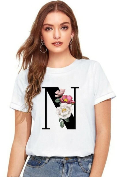 Women Printed Round Neck Polyester White, Pink T-Shirt