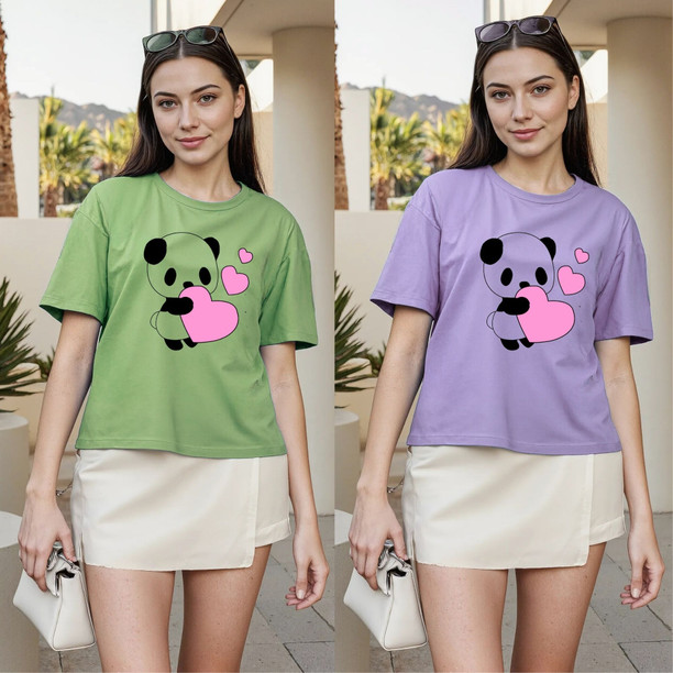 Women Printed Round Neck Polyester Green, Purple T-Shir...