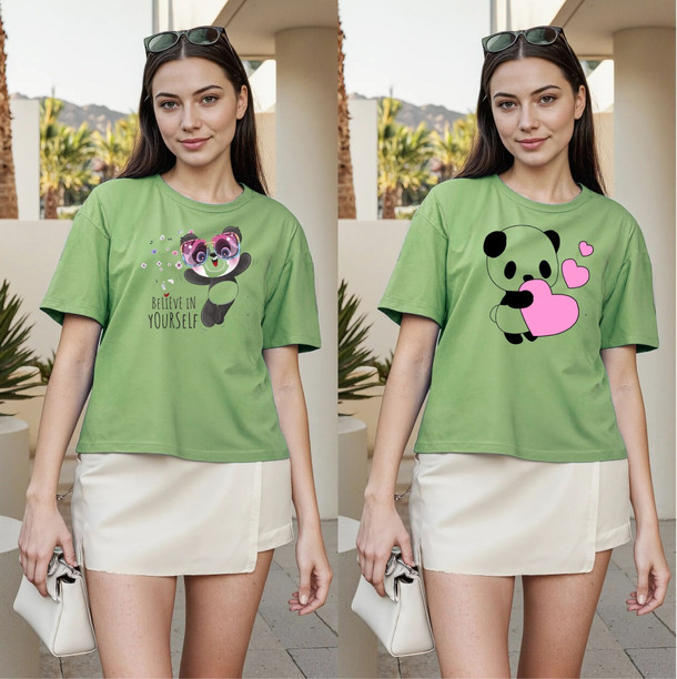 Women Printed Round Neck Polyester Green T-Shirt