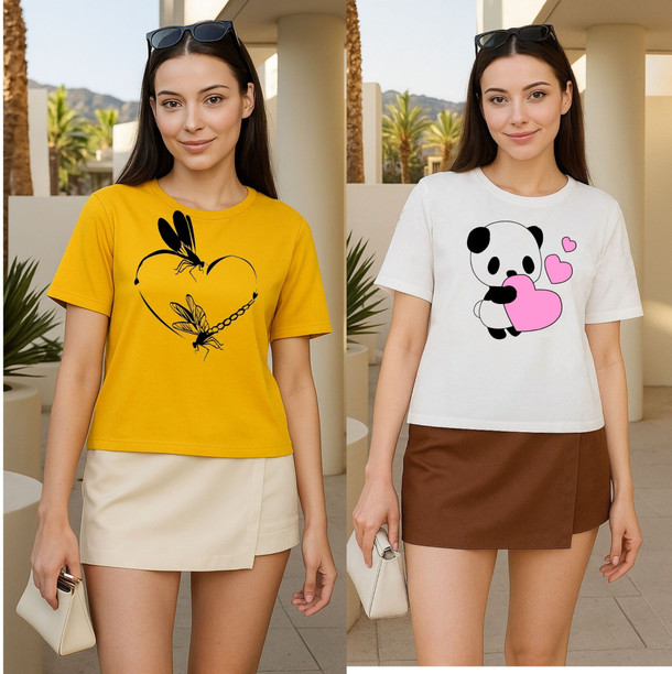 Women Graphic Print Round Neck Polyester Yellow, White ...