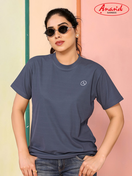 Women Solid Round Neck Polyester Grey T-Shirt