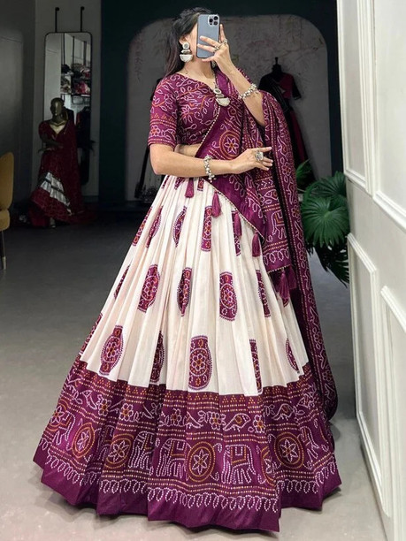 Bandhani, Printed, Geometric Print, Digital Print Semi ...
