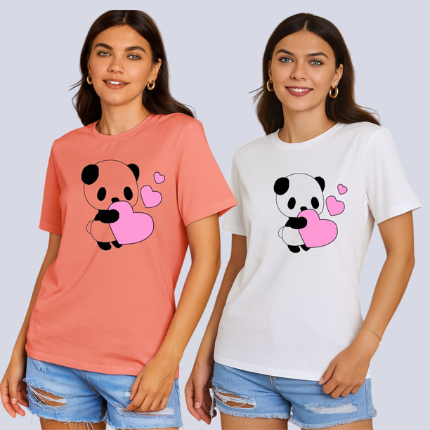 Women Graphic Print Round Neck Polyester Pink, White T-...