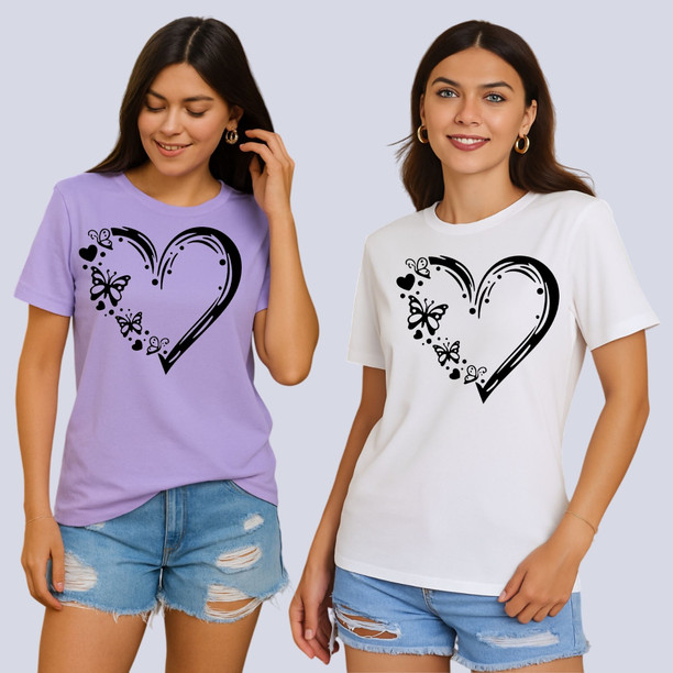 Women Printed Round Neck Polyester Purple, White T-Shir...