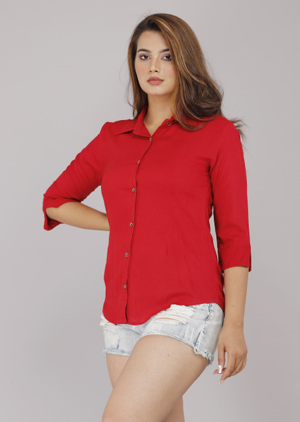 Women Regular Fit Solid Built-up Collar Casual Shirt