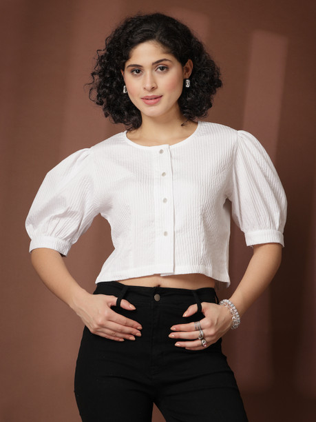 Women Regular Fit Self Design Collarless Collar Casual ...